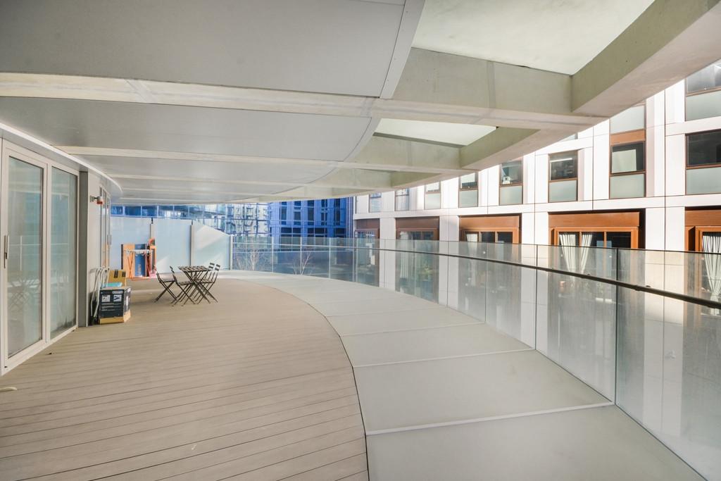 A truly luxurious two bedroom two bathroom second floor apartment with a massive private terrace set in the iconic development of Arena Tower E14