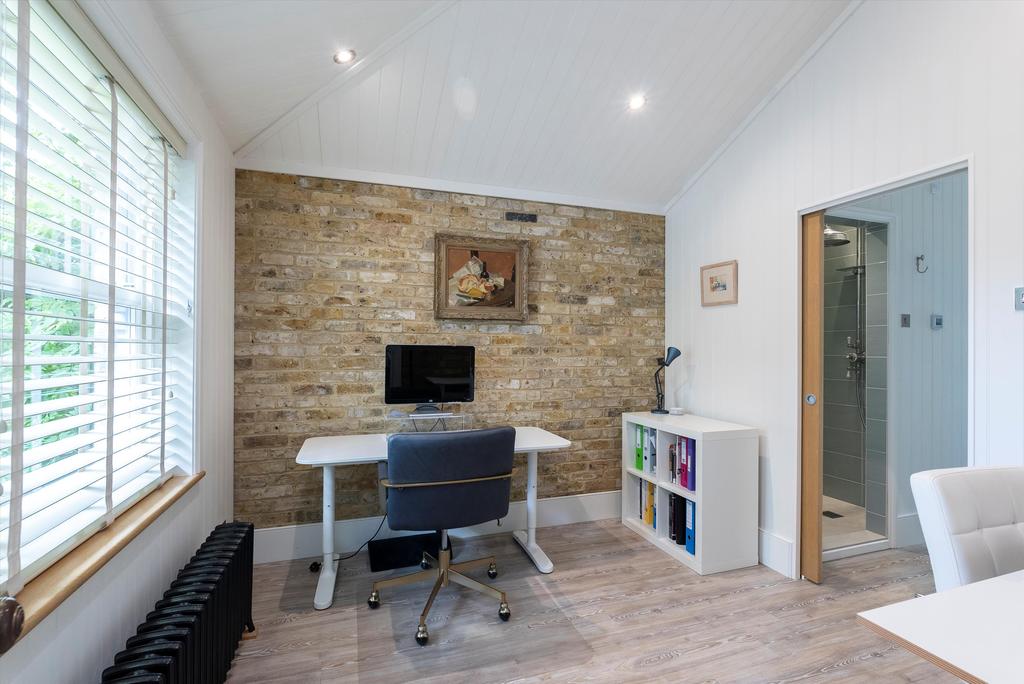 The ground floor also houses a fourth / guest bedroom with an en suite bathroom that also opens up on to the garden. There is also a useful study area and separate cloakroom.