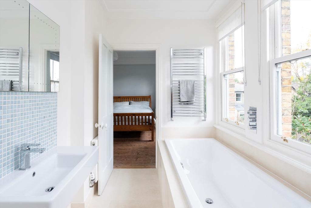 Spread across the upper floor are three bright and airy bedrooms including a principal suite overlooking the garden with a luxurious en suite bathroom. All bedrooms also benefit from a contemporary family bathroom.