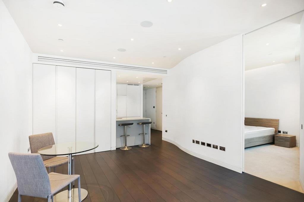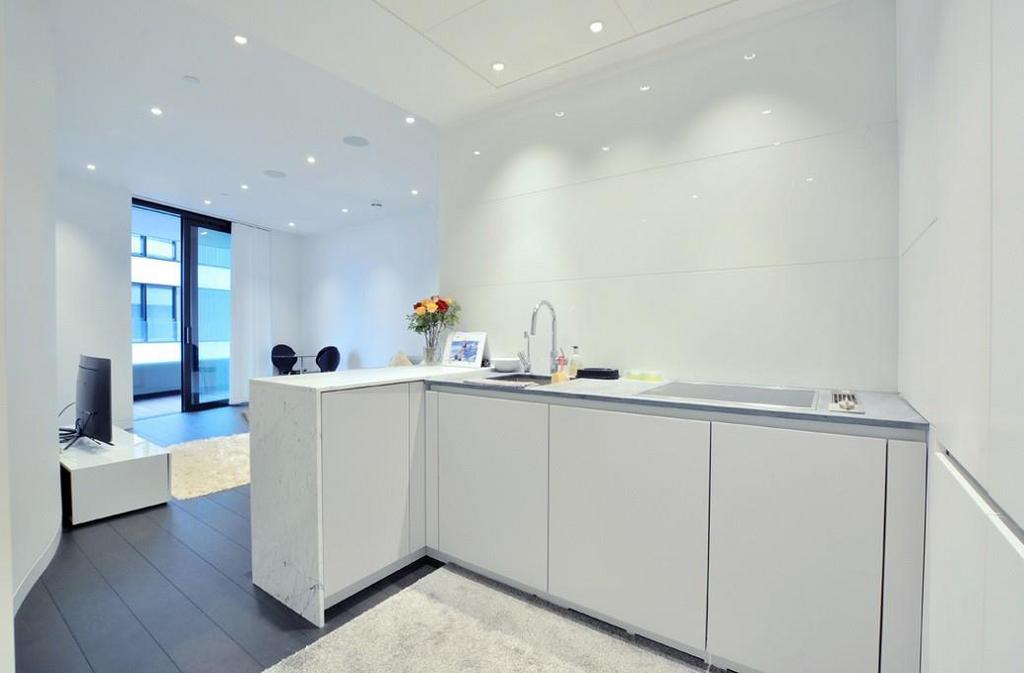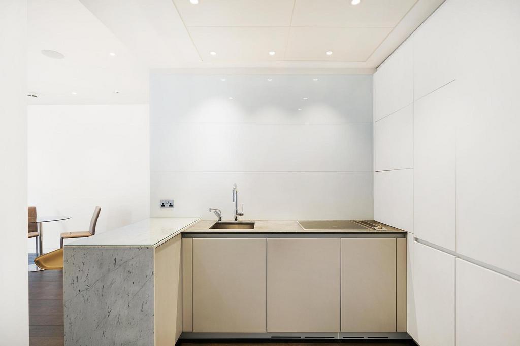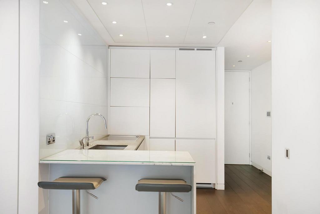 The kitchen leads onto the lounge which benefits from an abundance of natural light pouring through from the large floor to ceiling windows. Access to the private terrace is found through here where one can enjoy views of the River Thames.