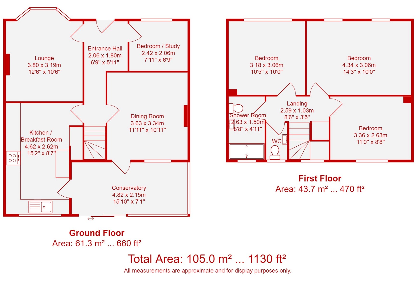 GROUND FLOOR: Entrance Hall * Dining Room * Study/Bedroom * Kitchen/Breakfast room * Living room * Conservatory overlooking the garden.