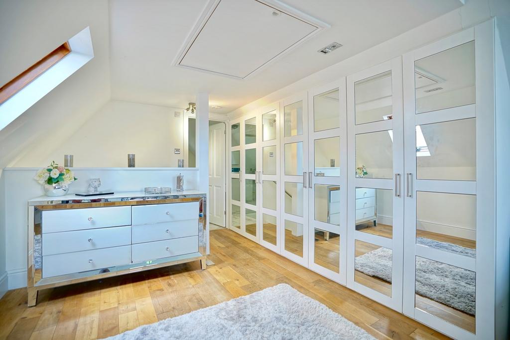 Double glazed window to rear overlooking the marina, double glazed sky light window, radiator, recessed down lighters, access to loft space, timber flooring, a range of wardrobes providing hanging and shelving, eaves storage cupboard.