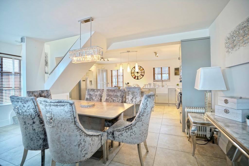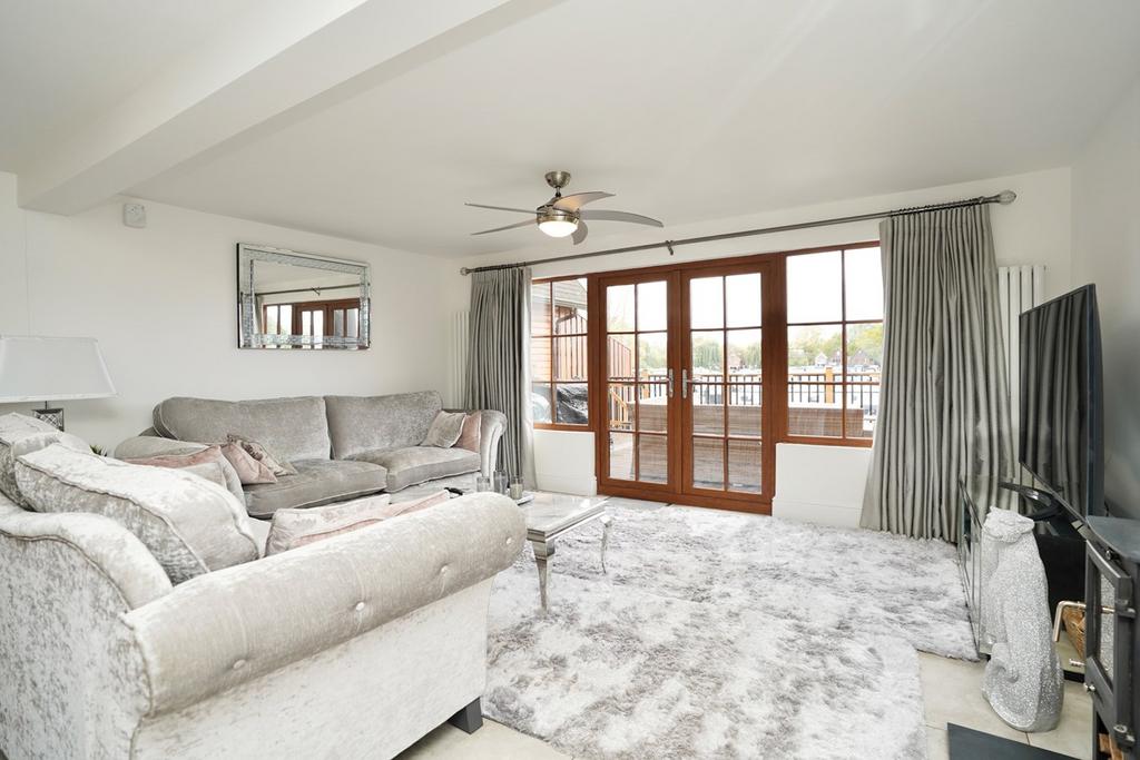 A triple aspect room with two double glazed windows to front aspect, double glazed window to side aspect, two double glazed windows to rear and double glazed French doors opening on to the decked terrace overlooking the marina offering beautiful views, tiled flooring throughout, under stairs storage cupboard.