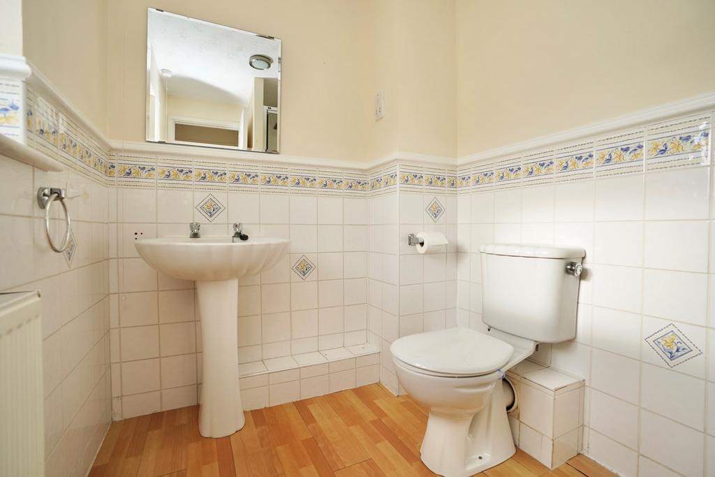 Window to front aspect, fitted in a three piece suite comprising low level WC, wash hand basin, shower cubicle, tiled surrounds, radiator.