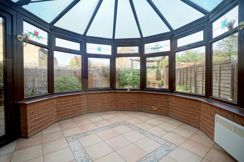 Of double glazed construction and brick base, tiled flooring, French doors to side aspect, electric heater.
