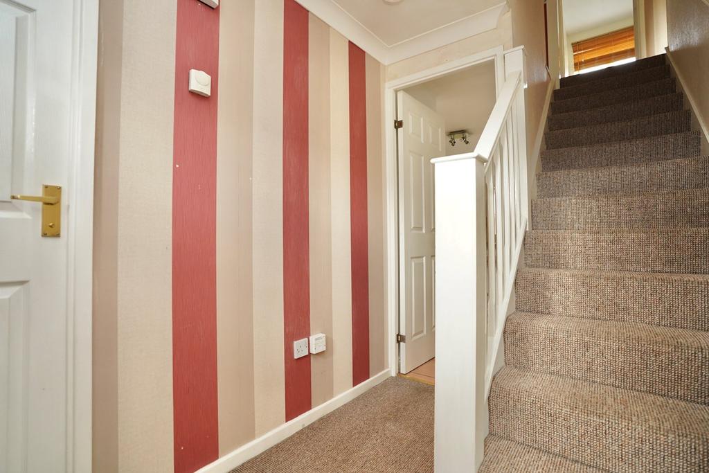 Stairs to first floor, coving to ceiling, window to front aspect, radiator.