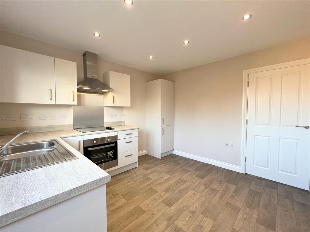 Dining Kitchen - 3.38 x 3.33 (11'1" x 10'11") - Modern range of light coloured wall and floor units with complimentary work surfaces and splashbacks incorporating a one and a half bowl stainless steel sink unit, large larder unit, integrated oven with stainless steel splashback and chimney extractor over. Space for fridge freezer, washing machine and dining table. There is a further useful recessed storage cupboard, vinyl flooring, recessed spotlights and back door off into the rear garden.