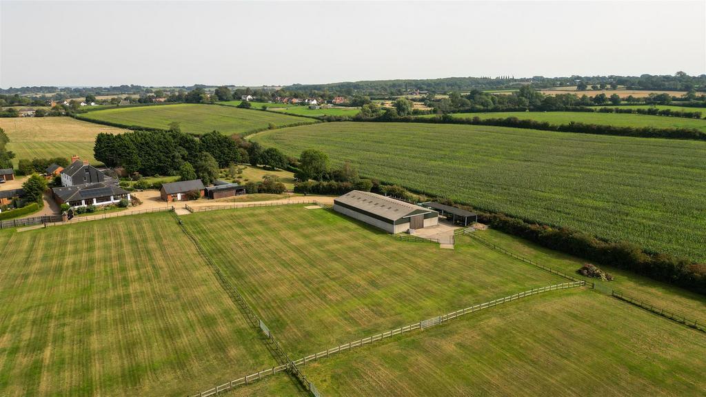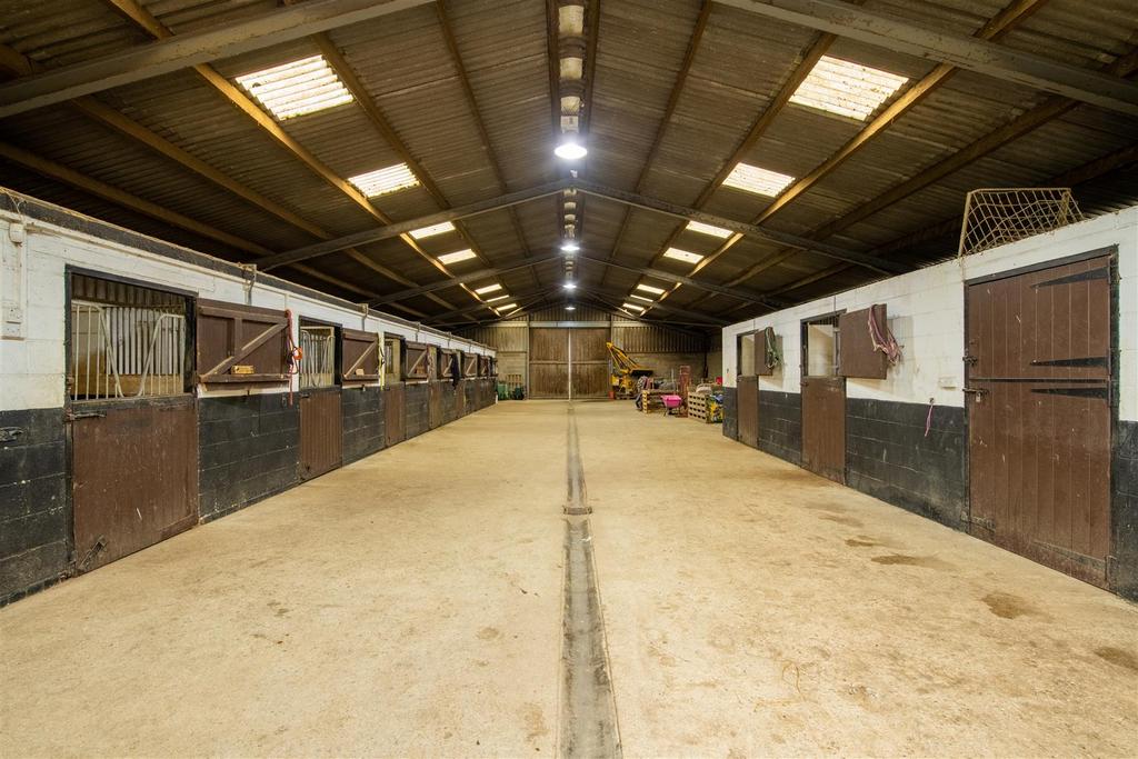 Equestrian Facilities & Gardens - The property is approached by electric double gates with a driveway leading to a walled garden and main house with parking for numerous vehicles and extends to the formal gardens and a stable block which consists of five boxes (currently used as storage areas). The driveway branches off, thus separating the equestrian day to day running from the main house and therefore making it ideal for livery or other uses. There are various equestrian facilities including a large modern agricultural barn measuring 100ft x 50ft comprising nine loose boxes, kitchen/office/WC, two tack rooms and extensive storage. Hard standing. Light, power and water are connected. There is space in the barn for additional boxes to be added up to a total of 14.