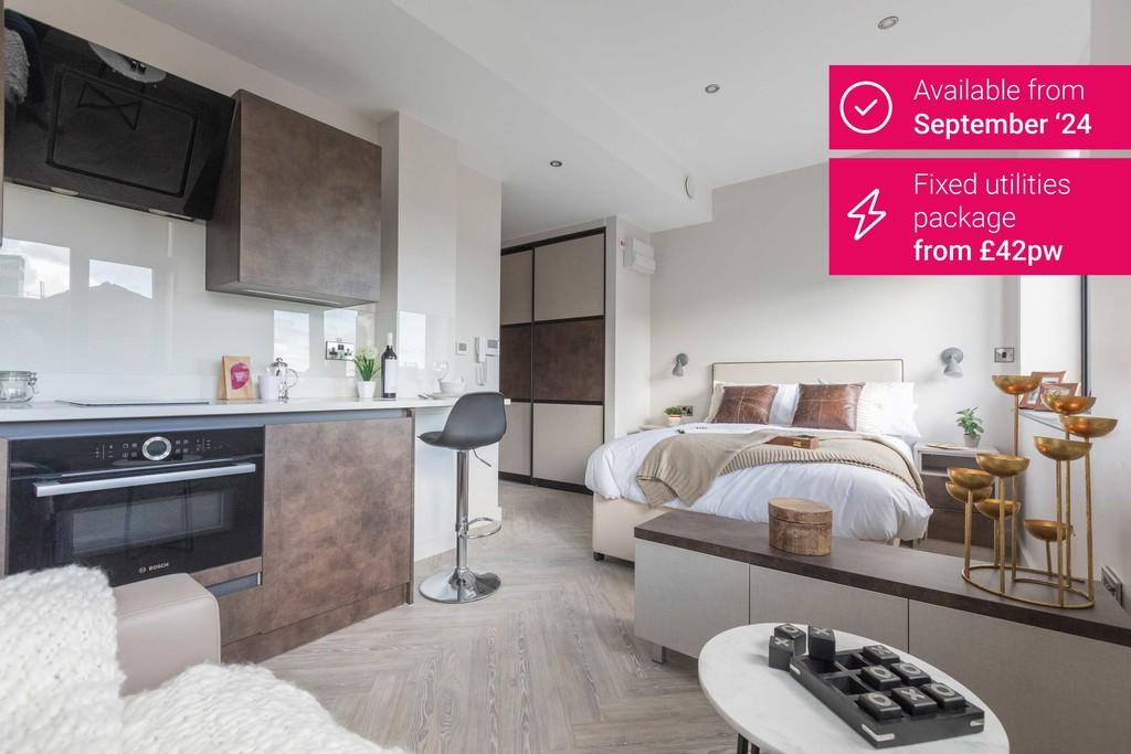 Internally, the apartment is fully fitted with stylish decor, as well as hyper-fast-Wi-Fi. There are bespoke furnishings including gas-lift ottoman beds and floor-to-ceiling units offering residents plenty of extra storage, as well as sustainable features like underfloor heating and Amtico flooring. A utilities package is in place that covers electric, water, and hyper-fast Wi-Fi for £42 pw.
