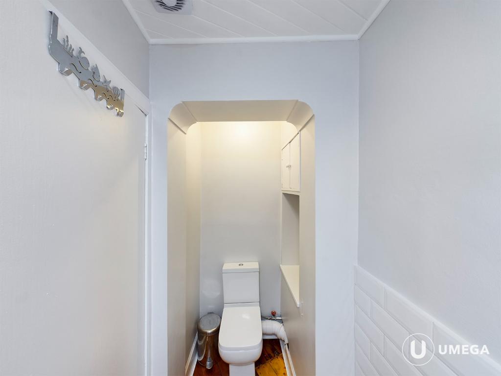 The double bedroom is on your left, with neutral colours, a full height window and large wardrobe, it's the perfect place to relax. Across from the bedroom is the modern bathroom with WC, sink and shower over the bath.