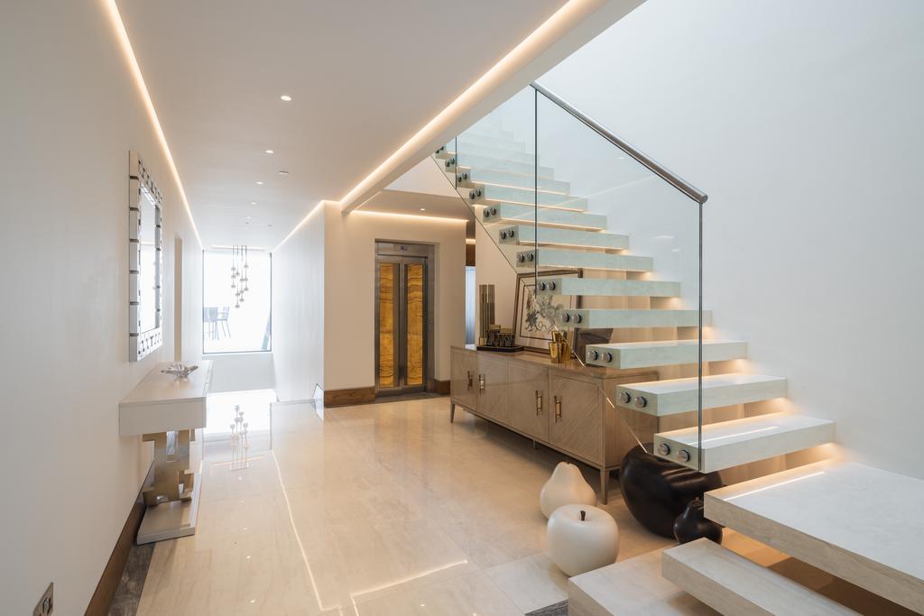 Spanning approximately 8,500 square feet across three levels, each accessible by lift, the accommodation is exquisitely appointed throughout, showcasing the finest ethically sourced materials. Every detail has been thoughtfully considered to create a seamless blend of luxury, comfort, and sustainability.