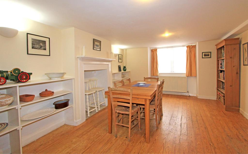 The ground floor includes an entrance hall, a living room, a dining room with a kitchen to the back opening onto the garden. The two floors above comprise four bedrooms, a shower room and a bathroom.