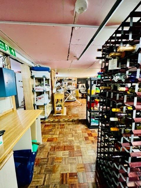 Large Cellar with parquet flooring currently being used for laundry/storage.