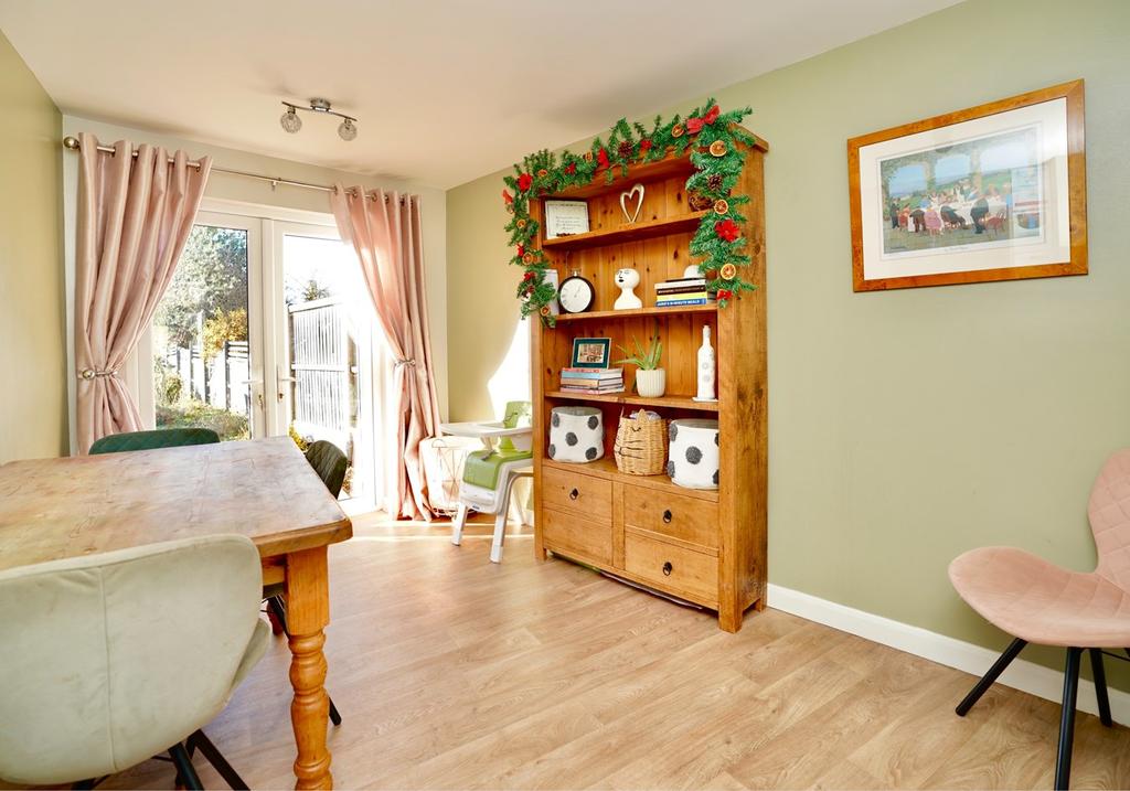 Radiator with decorative cover, UPVC window and door to front aspect and French doors accessing garden terrace to the rear, laminate flooring.