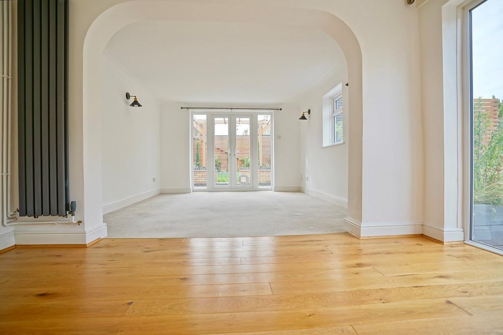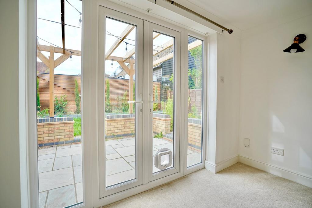 UPVC window to side aspect and UPVC French doors to rear aspect, wall mounted radiator, wall mounted factory warehouse style lighting, TV point, telephone point, opening through to