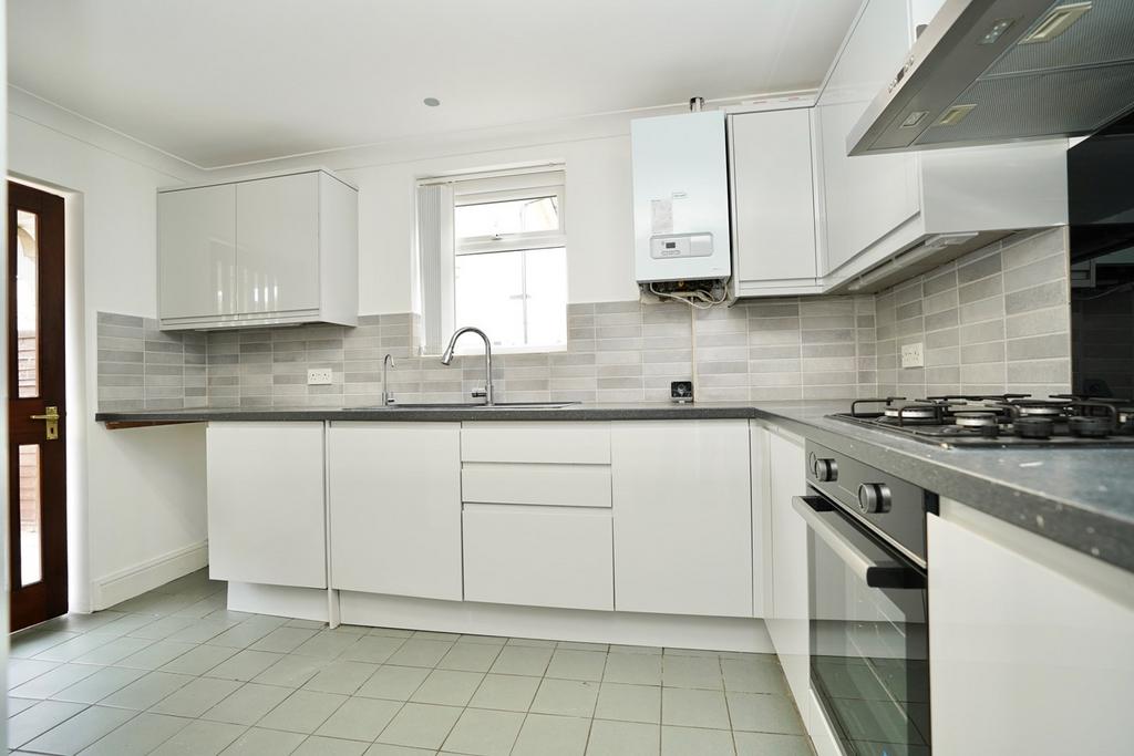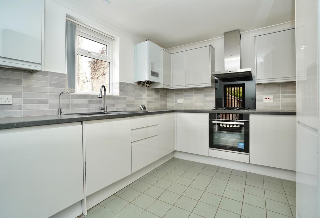 Re-fitted in a range of base and wall mounted units with complementing work surfaces and tiling, single drainer sink unit with swan neck mixer tap, integrated oven and hob with ceramic back plate and stainless steel chimney style extractor fan over, integrated automatic dishwasher, wall mounted central heating boiler (replaced approximately 12 months ago), plumbing for automatic washing machine, space for fridge freezer, UPVC window to front aspect.