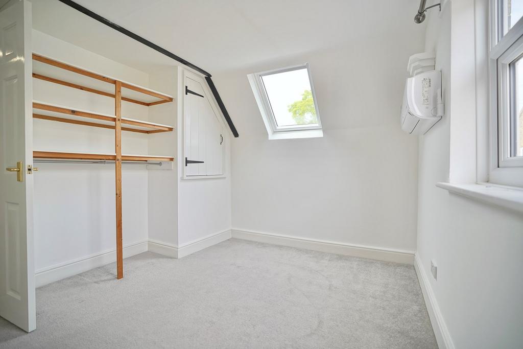 Step down from landing with UPVC double glazed window to rear aspect and Velux window, access to loft space, double panel radiator, built in storage cupboard with hanging and shelving, air conditioning unit.