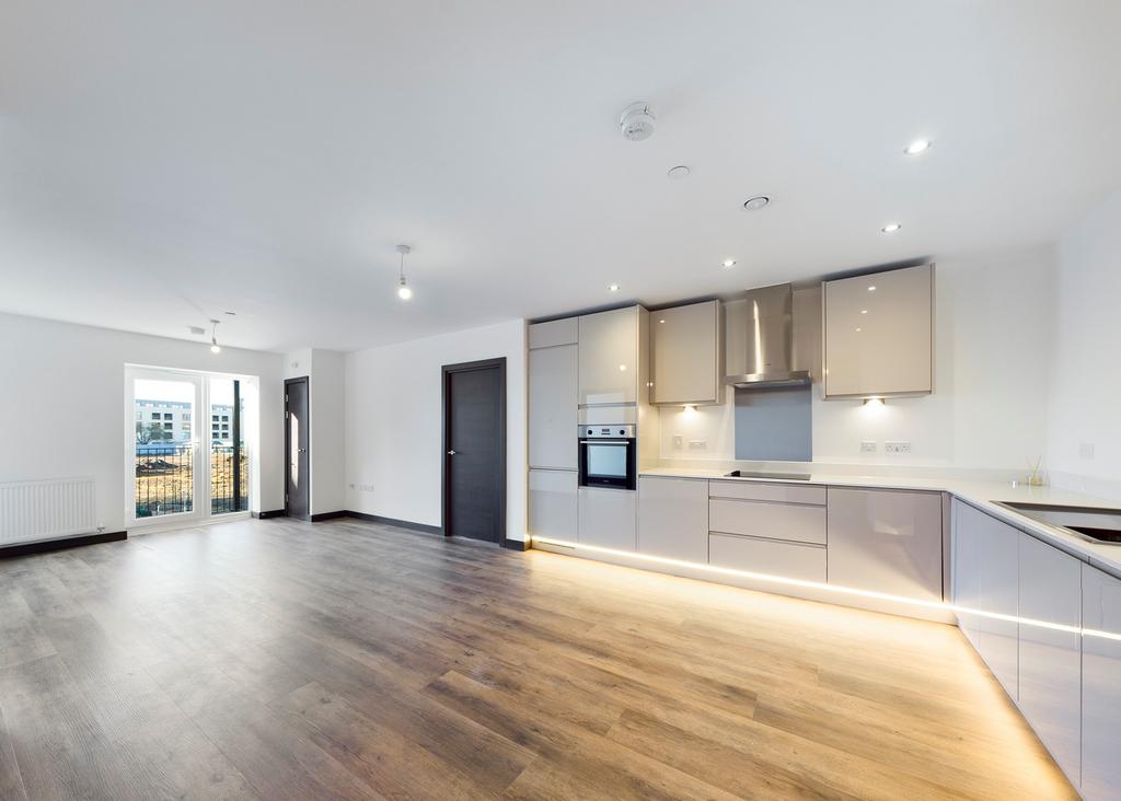 The property comprises: entrance into the wonderfully bright and spacious, open plan living with access to the sizeable balcony. The contemporary kitchen upholds a range of low and eye level storage amongst a choice of integral appliances, all professionally hidden behind the stylish high gloss, grey fascia. Appliances include: fridge, freezer, washer/dryer, dishwasher, oven, hob, boiling water/filtered water tap. The upgraded kitchen lighting creates a wonderful atmosphere and further enhances the bespoke nature of the apartment.