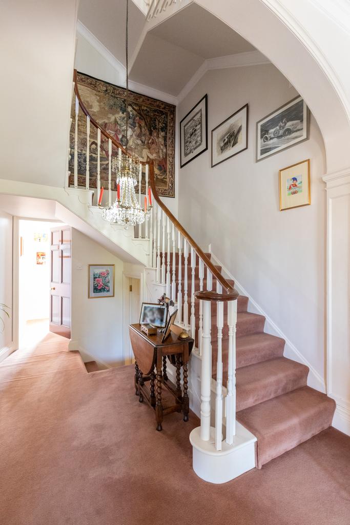 Set within 1.75 acres of beautifully maintained, mature grounds, the property enjoys exceptional privacy and includes a superb Coach House featuring extensive garaging and a Billiards room above.