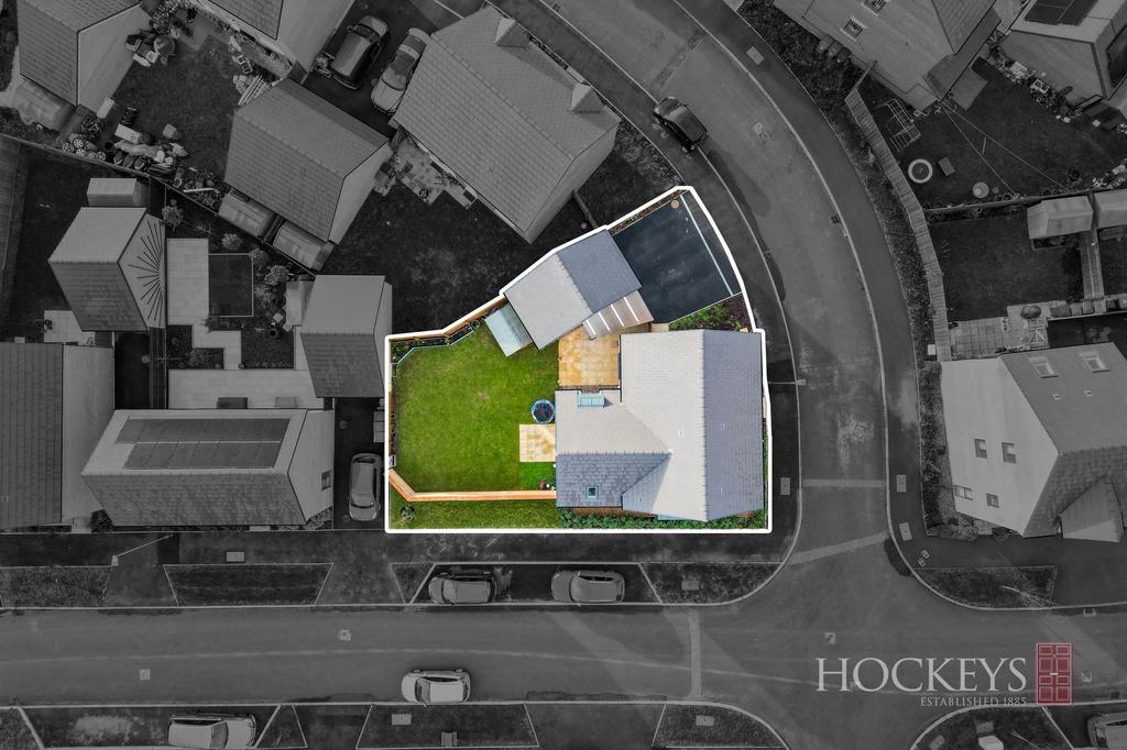 The rear garden is laid to lawn with brick walling to one side, two patios accessed from both the kitchen and dining room, and a covered area used for storing bicycles. To the front is a single garage with a double width driveway in front. There is a small strip of garden running along the front and side of the property which is lined with bushes.