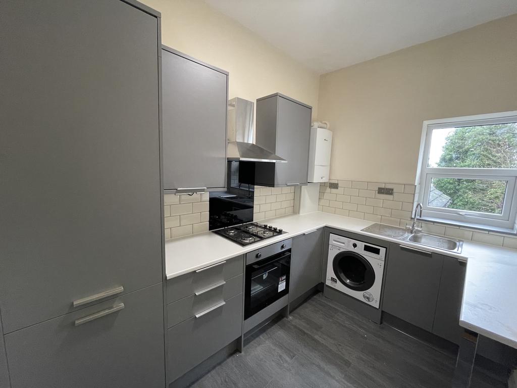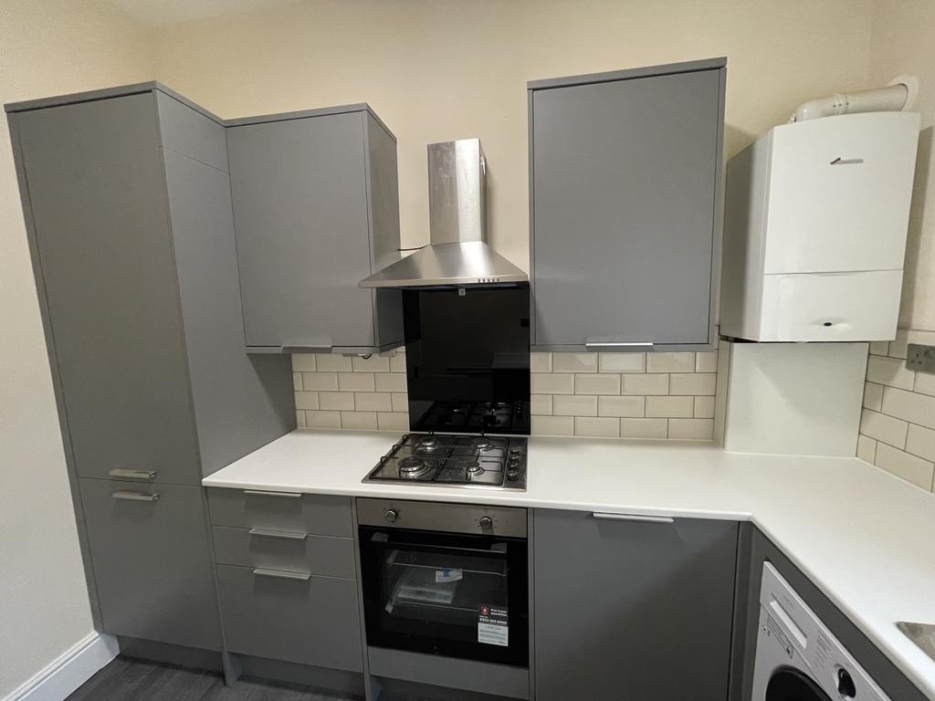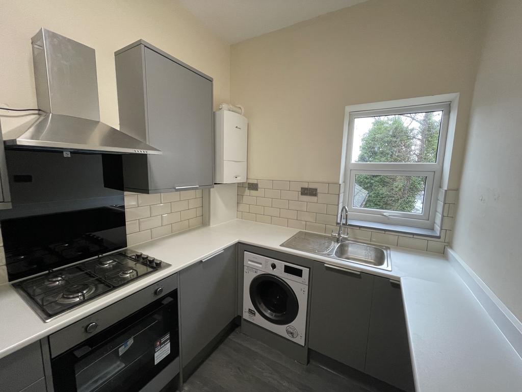 Newly redecorated first floor flat forming part of a former Vicarage, high ceilings throughout giving it an airy, spacious feel. The fully fitted kitchen has been recently refurbished with grey gloss units & white brick tiles. It includes a built in fridge freezer, washer dryer and brand new lamona electric oven with gas hob.