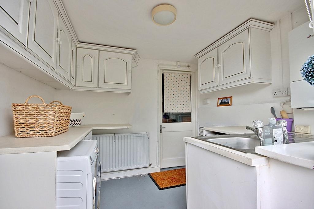 8' 7" x 7' 4" (2.62m x 2.24m) Matching base and wall storage units. with integrated sink and drainer. Space for washing machine and tumble dryer. Wall mounted Worcester Bosch boiler. Double glazed window and door to the rear garden. Door through to the garage. Ceiling light point and radiator.