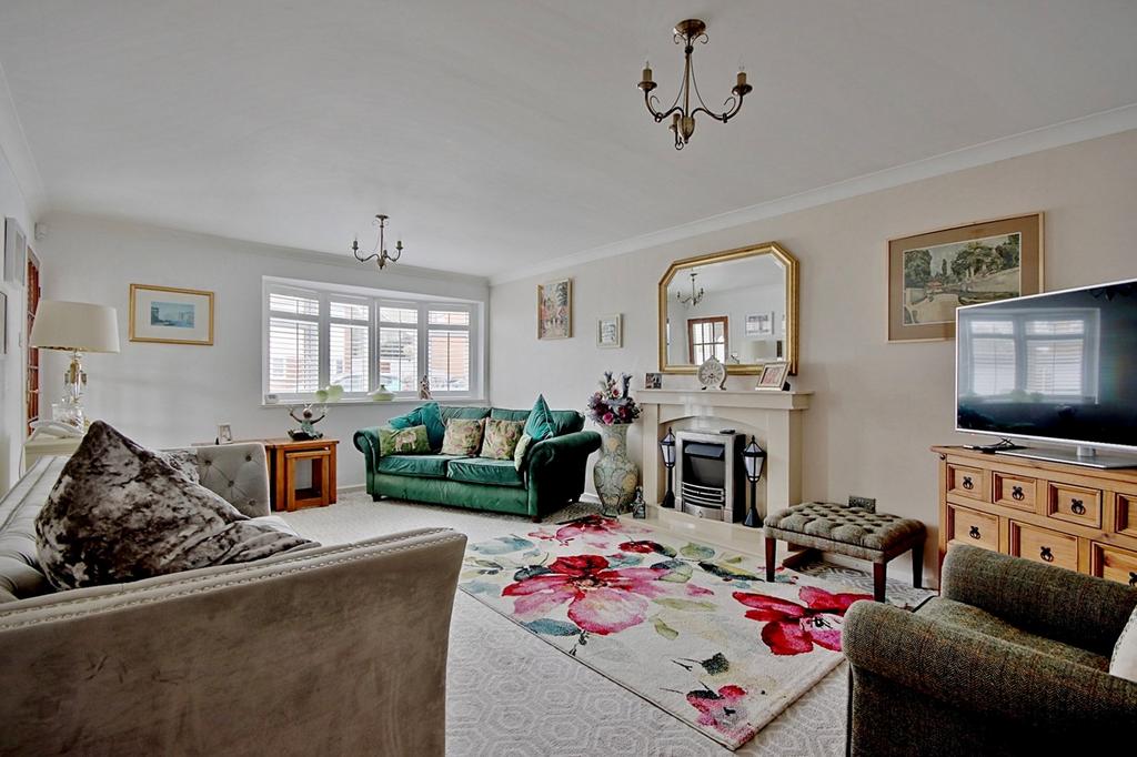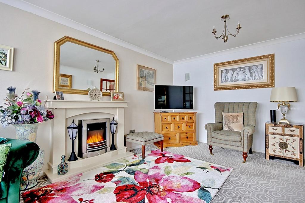 12' 8" x 19' 1" (3.86m x 5.82m) Double glazed bay window with a view of the front aspect. Feature electric fireplace. Ceiling and wall light points. Radiator.