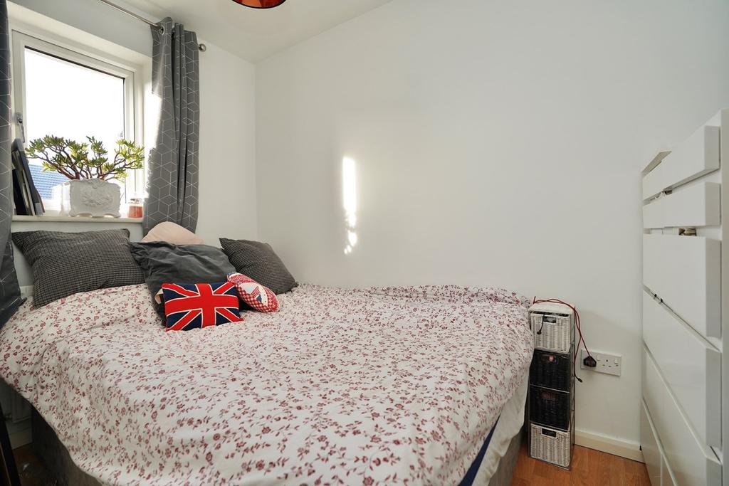 UPVC window to front aspect, radiator, double wardrobe with hanging and shelving.