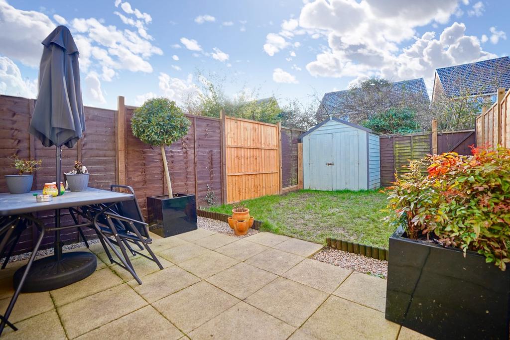 The front garden is hard landscaped with parking for two vehicles with gravelled borders. The rear garden has a paved terrace, shaped lawn, timber shed and the garden is enclosed by panel fencing offering a good degree of privacy.