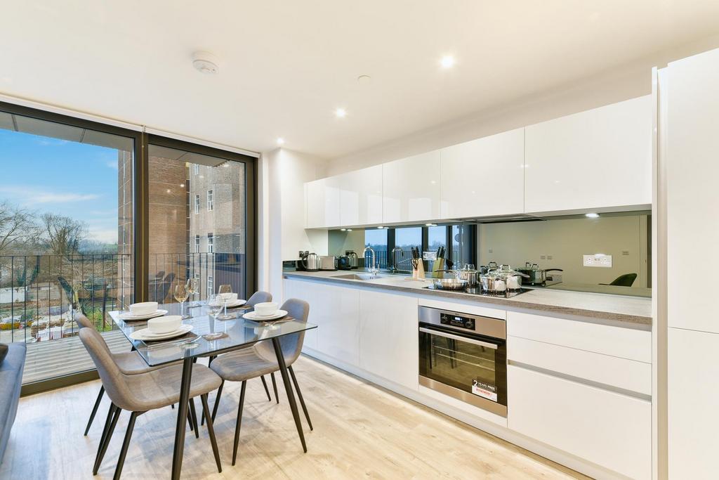 A large open plan kitchen and living area, with wooden flooring throughout leading onto a large balcony. With both bedrooms being generously sized and the master bedroom benefiting from an ensuite bathroom, this property is perfect for a couple or professional sharers.