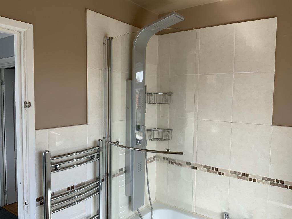 Bathroom - 3 piece White suite with rainfall shower over the bath. Low level WC and sink.