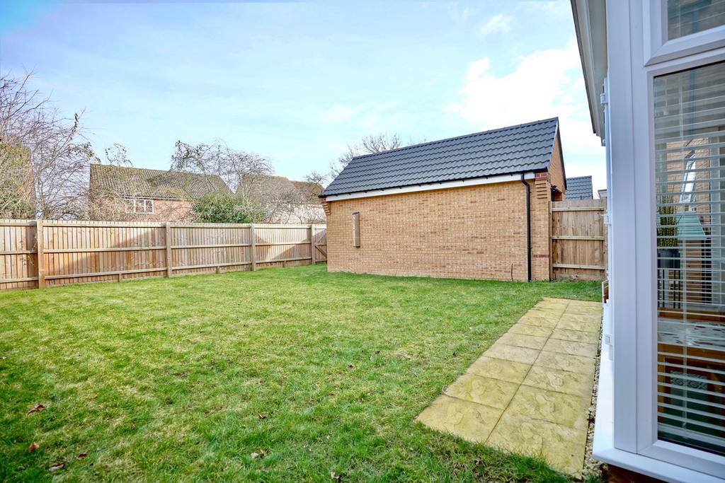 The rear garden is pleasantly arranged with a paved seating area, areas of lawn, outside tap and lighting. The garden is enclosed by panel fencing. There is an Over Sized Garage with single up and over door, power, lighting and eaves storage space, external lighting and parking provision for two vehicles.