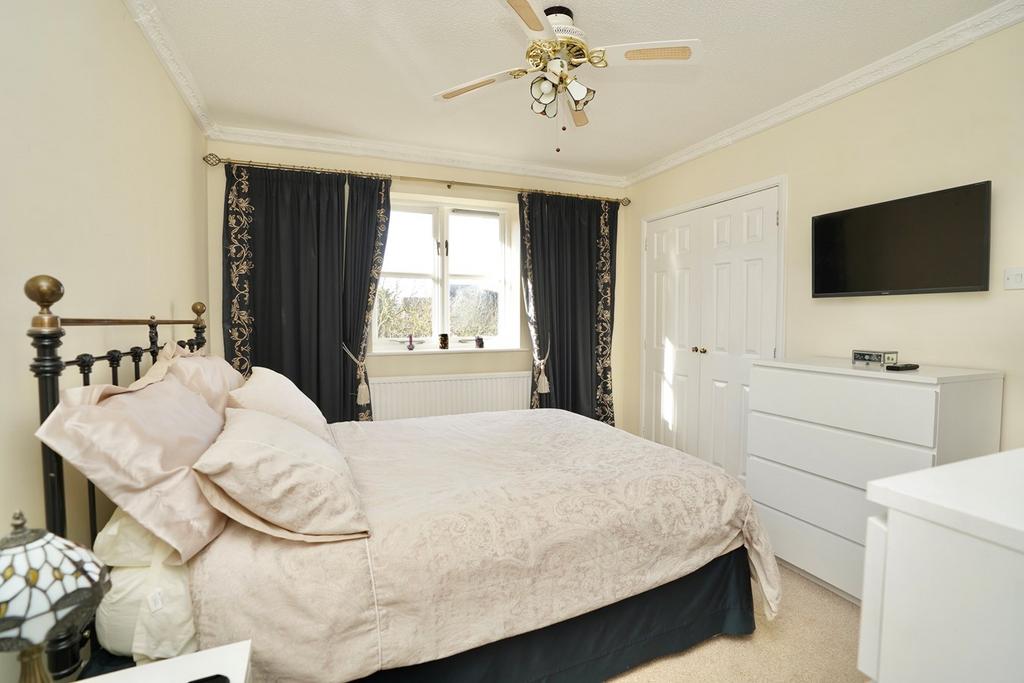 Sealed unit window to rear aspect, wardrobe with hanging and shelving, ceiling fan, radiator, coving to ceiling.