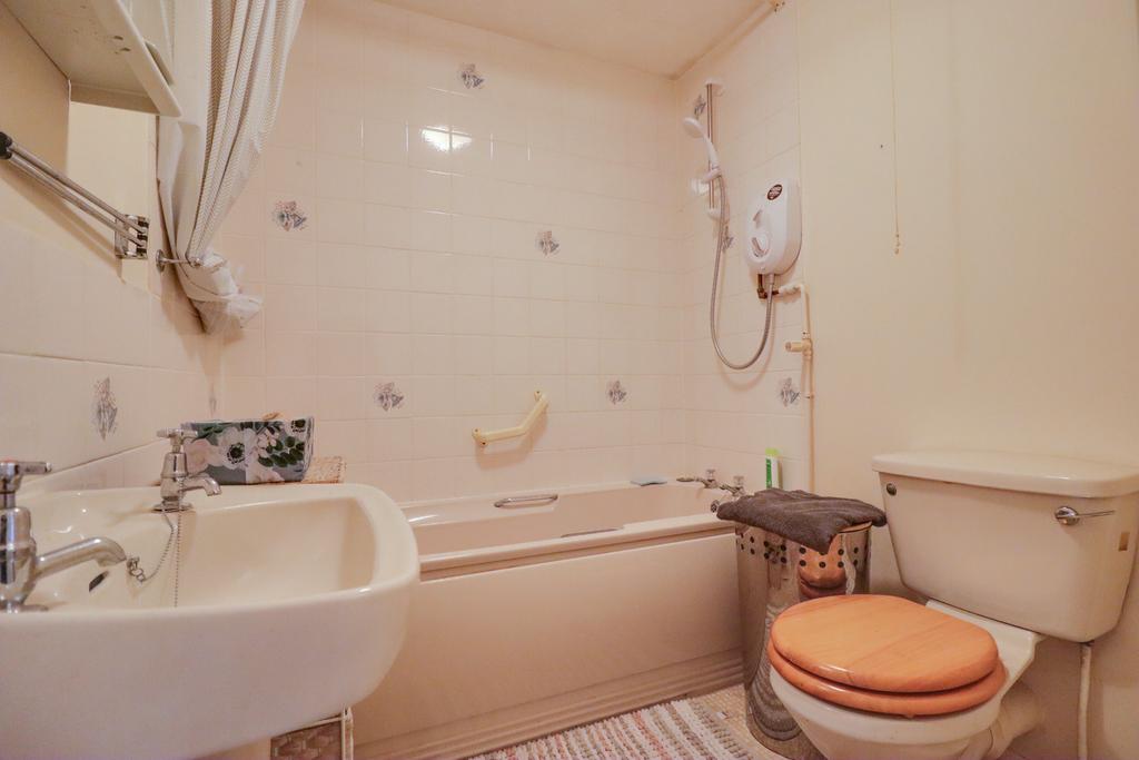 Textured finish to ceiling, extractor fan, panel enclosed bath with shower over, wash hand basin, low level WC, tiled to principle areas.