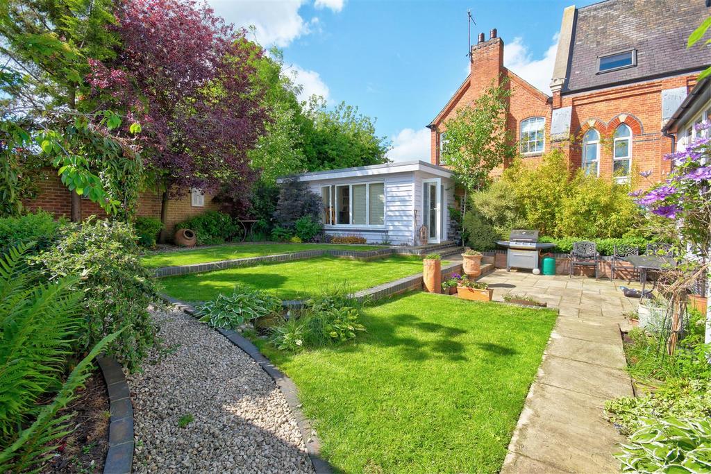 Outside - The property is set back behind a low level brick wall with ornate wrought iron railings above. A black and white Minton tiled path leads to the front door. To the right hand side of the property is a block paved area providing off road parking. To the left of the property there is a cobbled driveway leading to an oak frame garage with an electric up and over door and storage over. A door to the rear of the garage leads to the garden. There is an oak built out house which has its own electricity supply, wooden flooring and underfloor heating. The private and enclosed garden is mainly laid to lawn with mature shrub borders and a paved terrace area ideal for entertaining, which leads from the sitting room. A timber shed and garden room with wooden flooring and underfloor heating, complete the outside space.