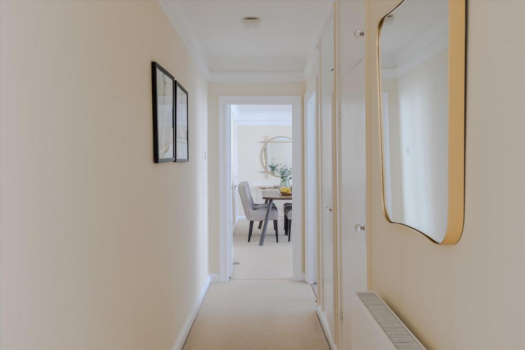 The principal bedroom is a very generous size and benefits from large windows and fitted wardrobes while the second bedroom (or study) also benefits from fitted wardrobes. There is fitted storage on the main hallway, and a tiled bathroom.