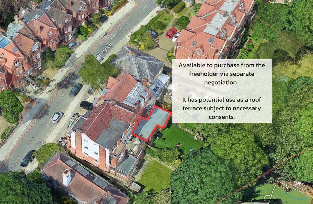 We are informed by the seller that the owner of the ground floor flat, who is a joint-freeholder, offered to sell the flat roof area outlined in red. The area has potential use as a roof terrace subject to necessary consents. This would be available to purchase from the freeholder via separate negotiation.