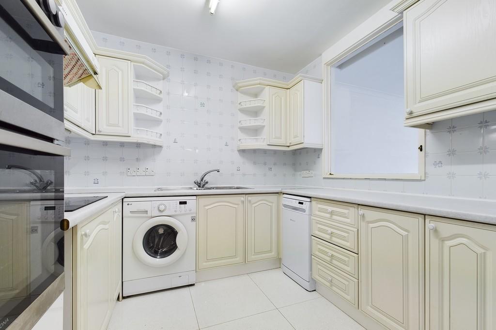 Decorated with new plush grey carpets throughout, the large living and dining area welcomes you as you enter the first door on the left in this wonderful property. Large double glazed windows and French doors which open onto the balcony, to brighten up this already spacious living area, as well as providing you with light airy feeling. There is more than enough space to fill this area with all your living and dining furnishings, to make this room your own. The room also offers a cosy homely feel with a large fireplace sitting centre of one of the main walls.