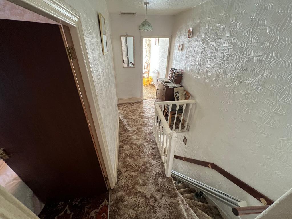 Papered décor and ceiling, access to loft, spindled balustrade, fitted carpet, doors to bedrooms 1, 2, 3 and family bathroom.