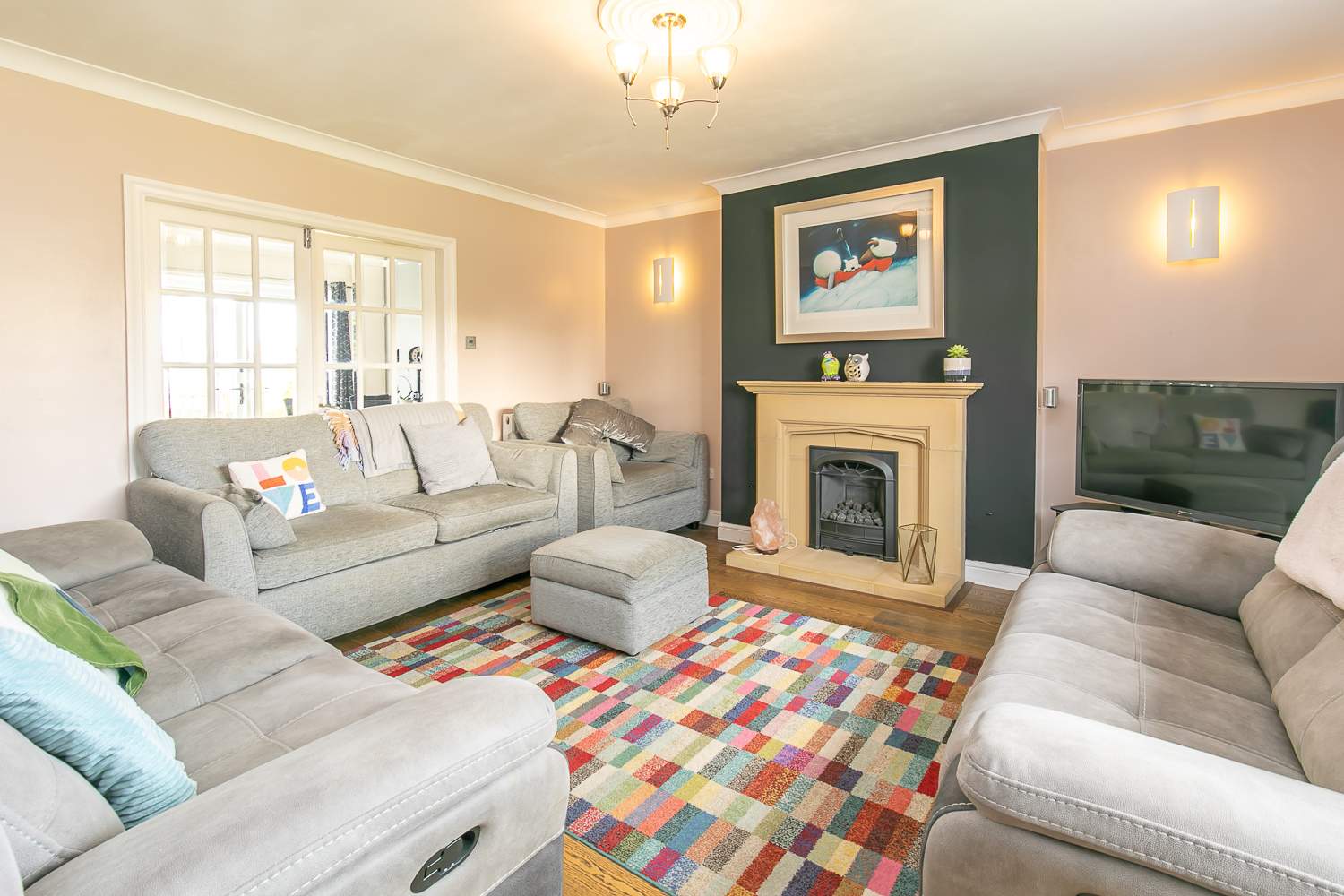 KITCHEN/DINER (approx 20'10 x 11'5) Large kitchen/diner fitted with a good range of shaker style wall mounted units featuring display cabinets and base units with drawers. Fitted laminate worktops with inset one and a half bowl sink with mixer tap and drainer. Appliances include, fan assisted oven, grill, five ring gas hob, under counter fridge and dishwasher. Feature breakfast bar with space for bar stools below. uPVC double glazed window overlooking the rear garden. DINING AREA Space for a 4-6 seater dining table. Wood effect flooring. Twin uPVC double glazed doors open into the rear decking and garden.