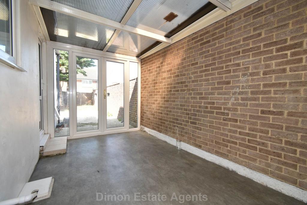 PVCu double glazed French doors to garden, polycarbonate roof, PVCu door to front.