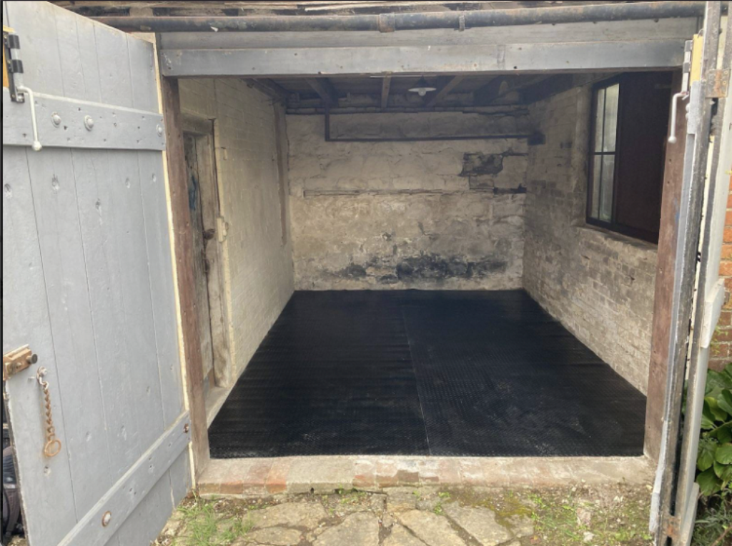 - Completely dry, with pitched roof, unusual for garages