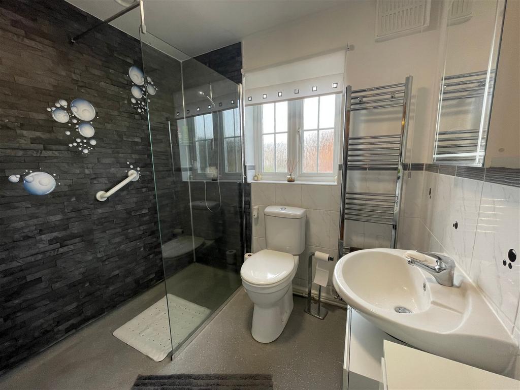 Wet Room - 7’02 x 5’09 – With a Upvc window to the side elevation, extractor, central heating radiator, wash hand basin, low flushing WC, shaver point, wet room floor and drain with mains fed shower.