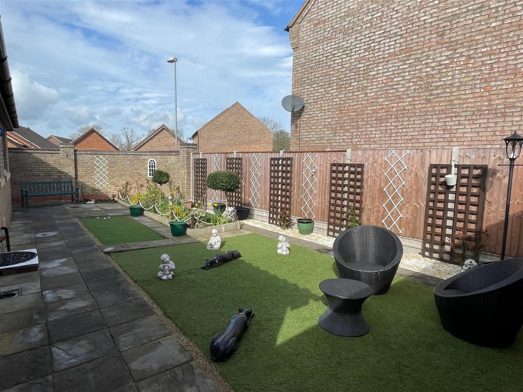 Rear – With gated access leading to the front, brick wall and newly erected fencing to the boundaries, paved pathways and artificial lawn areas, raised flower bed and outside tap.