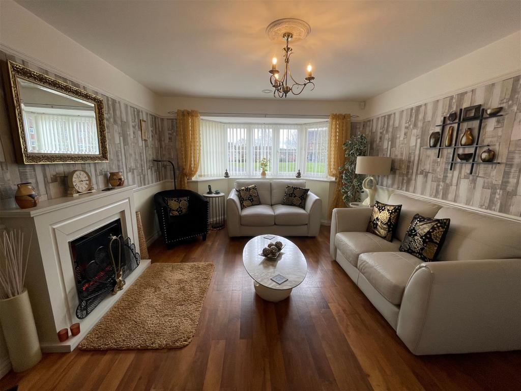 With a continuation of the 'Karndean' flooring, Upvc double glazed bay window to the front elevation, two central heating radiators, television point, log effect electric living flame fire inset into an attractive feature surround and hearth, picture rail, dado rail, double internal doors allowing access into the;