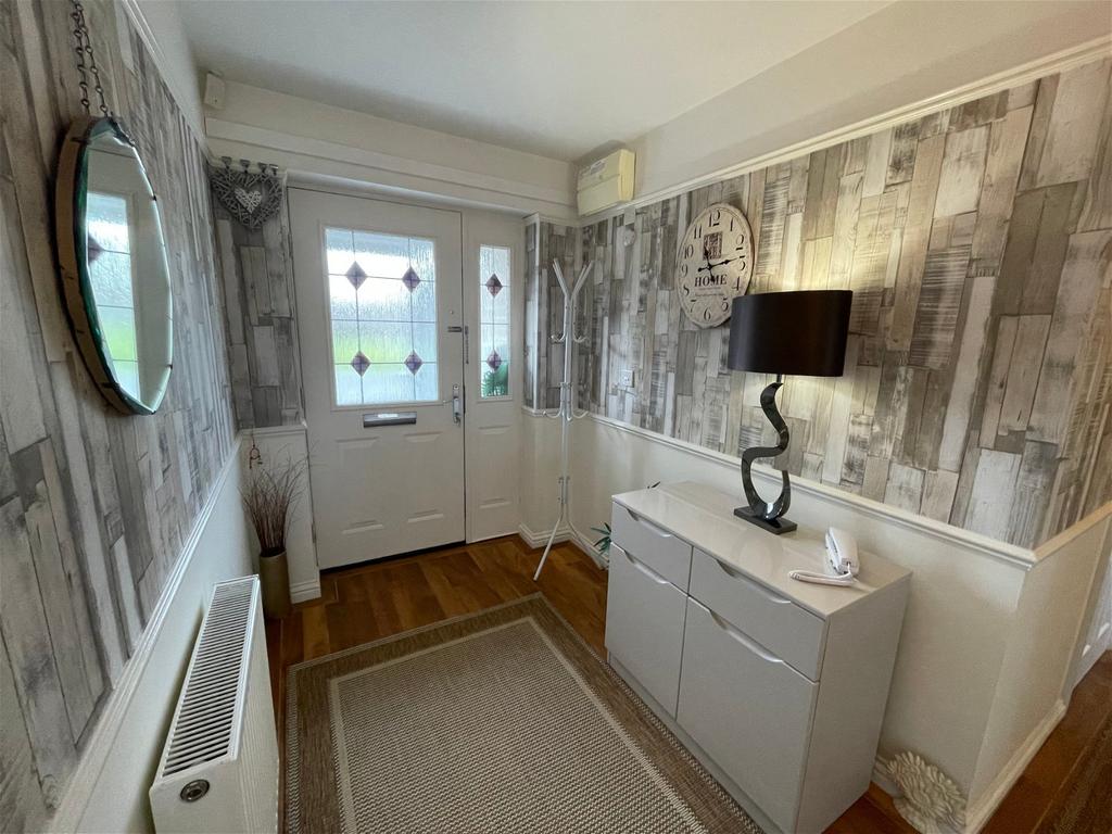 Hallway - With feature 'Karndean' flooring, picture rail, central heating radiator, central heating thermostat control, telephone point, electric consumer unit, airing cupboard housing the wall mounted boiler & recently fitted filter.