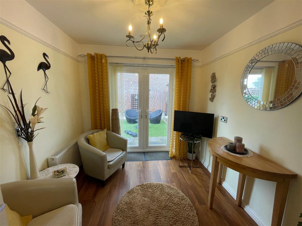 Dining Room - 8' 11 x 8' 1 Doubling as a home office with a continuation of the feature 'Karndean' flooring, Upvc double glazed French doors allowing external access to the rear, central heating radiator and picture rail. This room could make a fantastic over flow bedroom in the agents opinion.