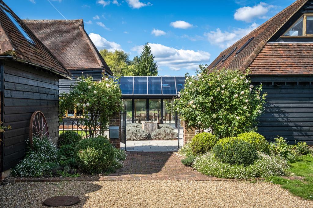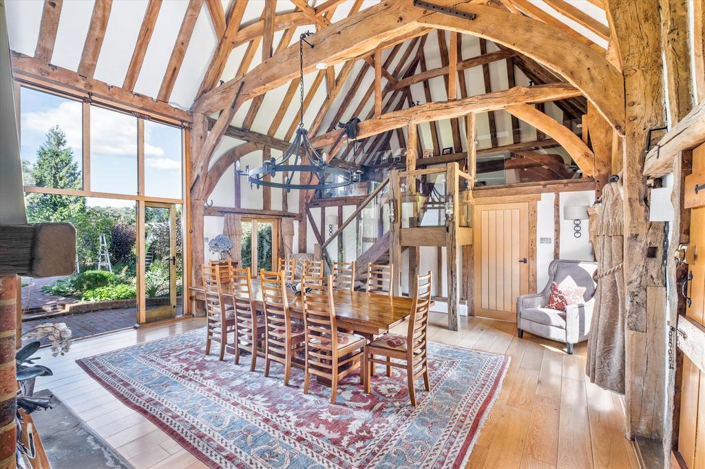 Sutton Grange dates back to 1706 and is Grade II listed. It was originally part of the Sutton Place Estate which was built by Sir Richard Weston, courtier to Henry VII. Upon entering Sutton Grange you are struck by the extreme vaulted ceiling in the sitting/dining room which has stunning exposed timbers and the open staircase to the mezzanine study.