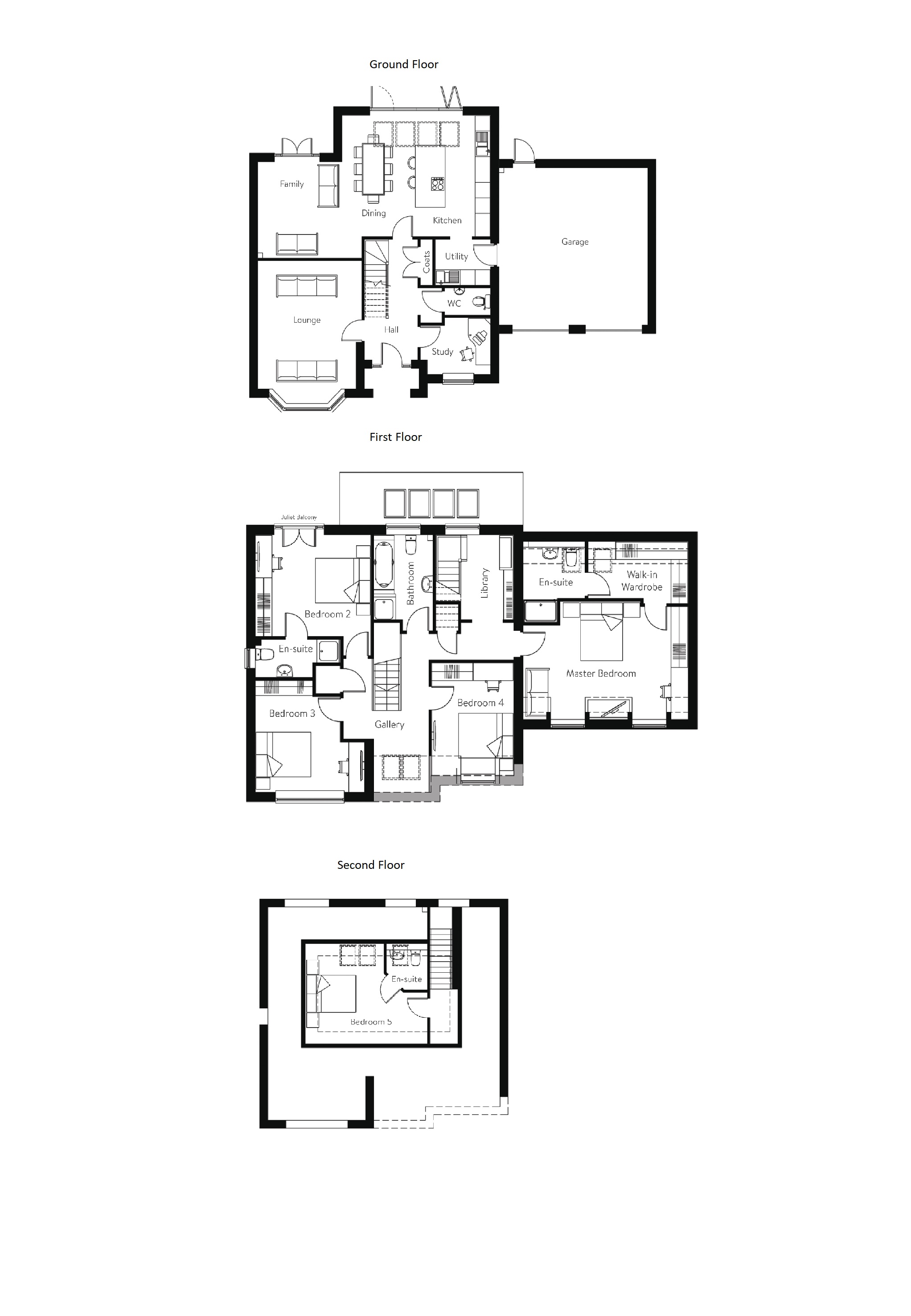 Gas-fired boiler with pressurised unvented hot water central heating system.Underfloor heating to ground floor with radiators to upper floors andchrome heated towel rails to wet rooms.Quality designer sanitaryware with chrome taps & fittings.Chrome shower enclosures & fixed-head showers to all wet rooms.Wet rooms to have a choice of wall and floor tiling from the Porcelanosa "bespoke range".Outside tap to rear.Chrome switches and sockets to ground floor and landings.Chrome ceilings spots to Hallway, Kitchen / Dining / Family, Master bedroom,Dressing room & all wet rooms.TV and BT points provided.External lights to all entrance doors.Full digital security system.Shaver sockets to Master En-suite & Bathroom.Doorbell to front door.Choice of quality kitchen units, worktops and handles.Branded integrated appliances including oven, hob, extractor hood,microwave, dishwasher and fridge freezer.Feature oak staircases with gallery landings.Pre-finished oak internal doors with quality chrome door furniture.Grey uPVC windows with square leaded lights.Maintenance-free woodgrain external doors and uPVC fascias & soffits.Solid cedar garage doors.Block paved driveways.Hard and soft landscaping to front and rear gardens.Full-height timber fencing to all plot boundaries.