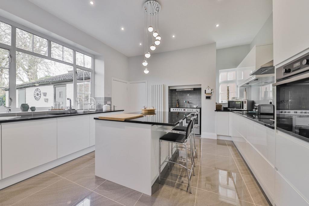 Having been refitted with a stylish high gloss range of contemporary style cabinets with complementing solid granite worktops and matching centre island unit, range oven set in chimney breast feature, single drainer sink unit, integrated appliances include, oven, hob, fridge-freezer and dishwasher.